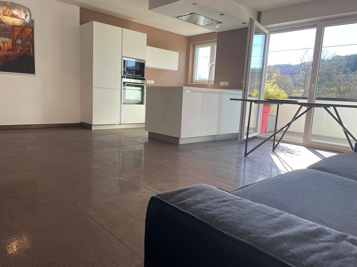 Il se compose , d'une entrée, d'un living spacieux avec cuisine équipée ouverte et balcon orienté plein sud, de deux chambres à coucher avec lit et armoires, d'une salle de douche avec wc, d'une cave en sous sol et d'un emplacement de parking en sous sol et un second extérieur.