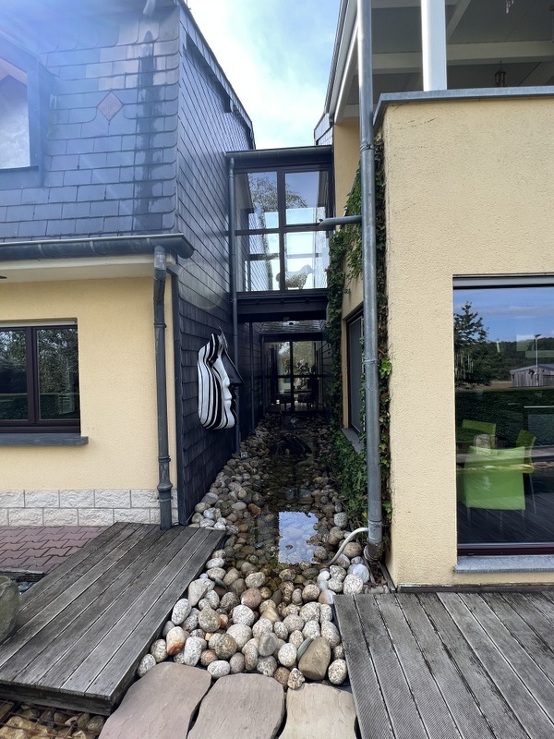 La qualité de vie est assurée, avec de jolies terrasses, un plan d'eau, des verrières laissant la nature entrer dans l'habitat...elle convient pour une famille, une profession libérale, une entreprise avec l'atelier à côté.